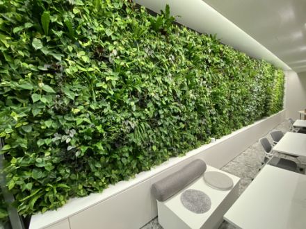 緑を印象付ける壁面緑化を中心としたコーディネート