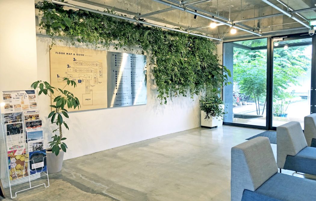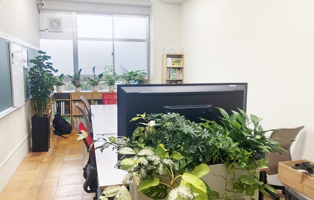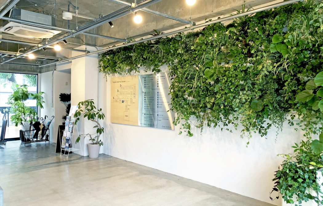 当社中部営業所のオフィスと共用部分に緑を設置し、空間に潤いをもたらしています。