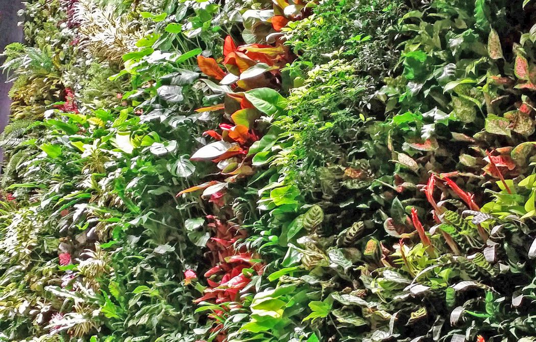 映画館のチケット売り場の前には高さ8m幅7.3m巨大な壁面緑化が設置されています。