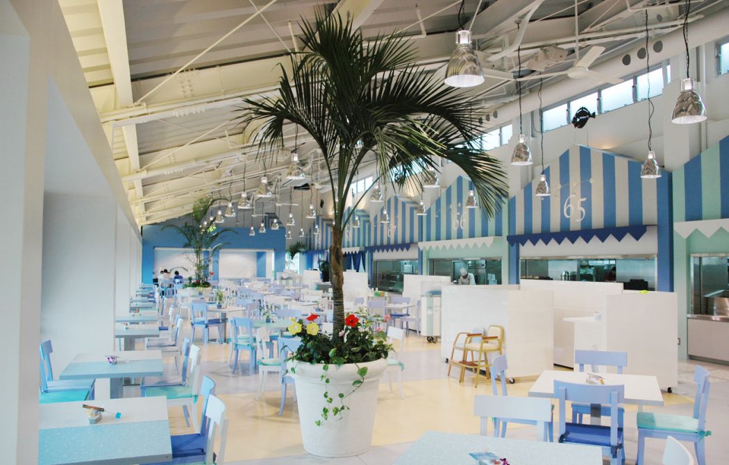 ビュッフェ形式で食事ができるレストランは、左手には海岸を望む開放的な雰囲気です。