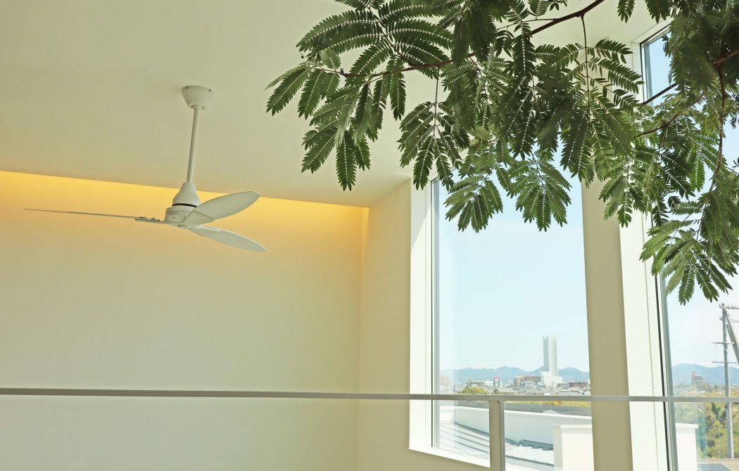 スキップフロアや吹き抜けの上に植物があり、日が差し込む場所なら、天候や時間により、木漏れ日が差し込み、