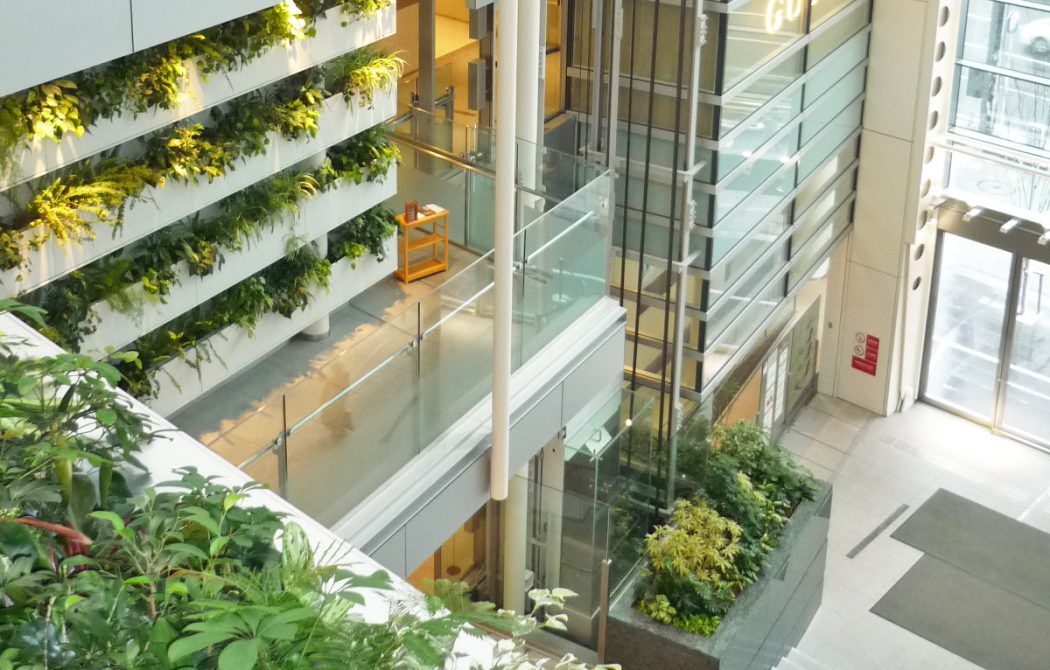 開放的なガラス張りのアトリウム空間は、植物をよりよく育み、そのエネルギーを空間に満たしていきます。