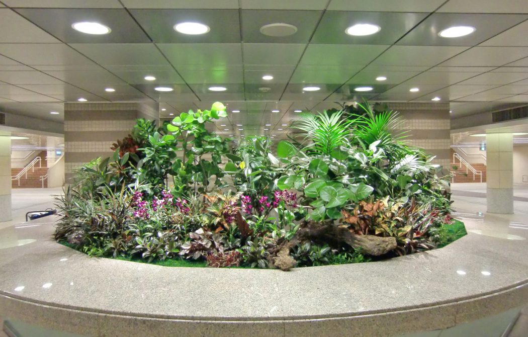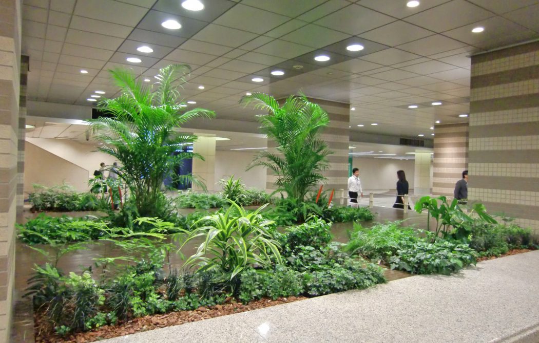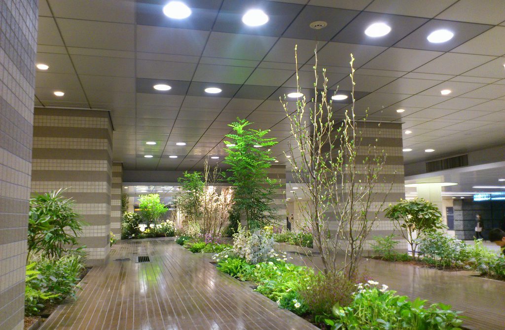 地下通路という特殊な環境下でも美しいみどりが保てるよう、システム、照度等設計段階から携わりました。
