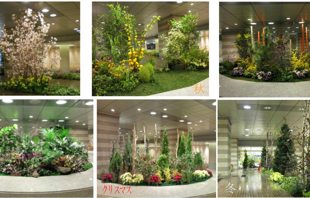 地下でも四季が感じられる、高い装飾性を備えた緑化プラン