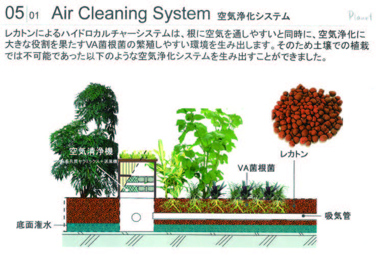 ハイドロカルチャーシステムは、根に空気を通しやすいと同時に空気浄化に大きな役割を果たす菌根菌の活動を活発にします。
