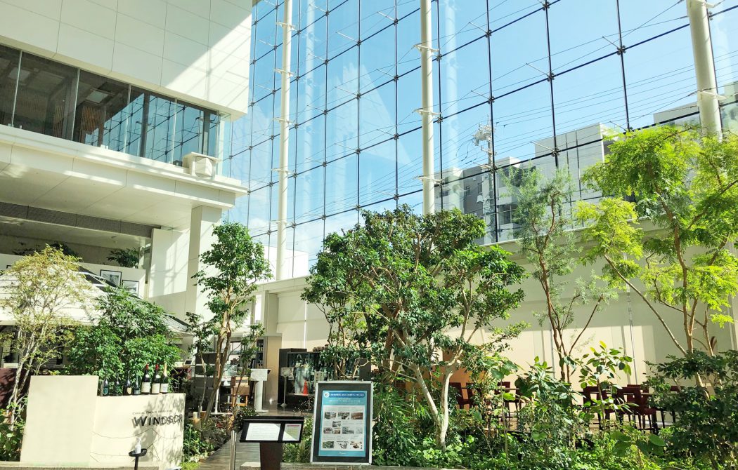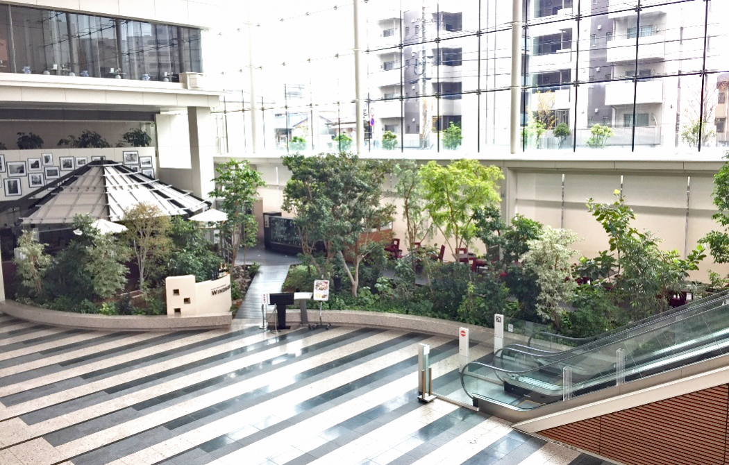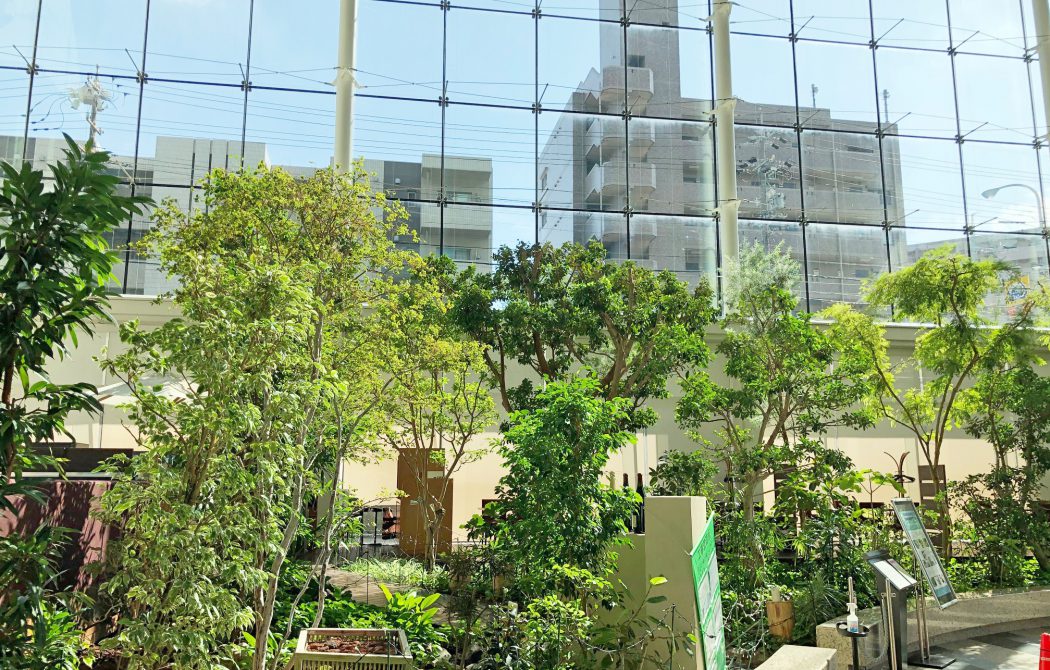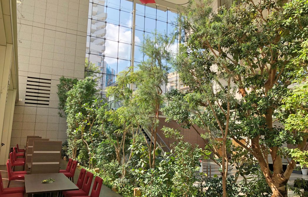 エントランスに入り、真っ先に視界に入るのは、高さ5mを超える高い木々です。