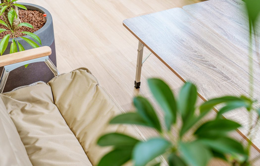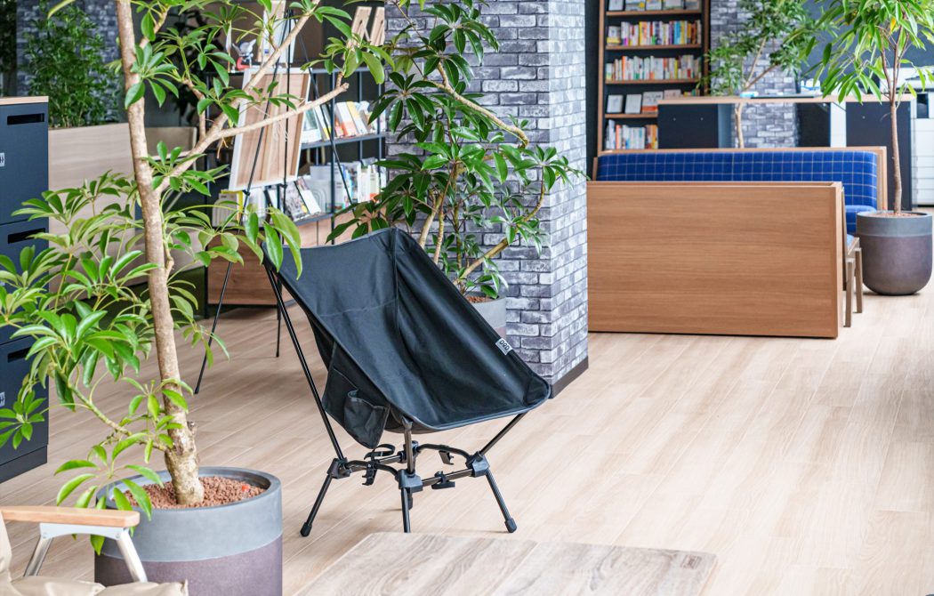 カフェのようなインテリアに加え、キャンプ用の家具などもあしらわれ、カジュアルにくつろげる空間になっています。
