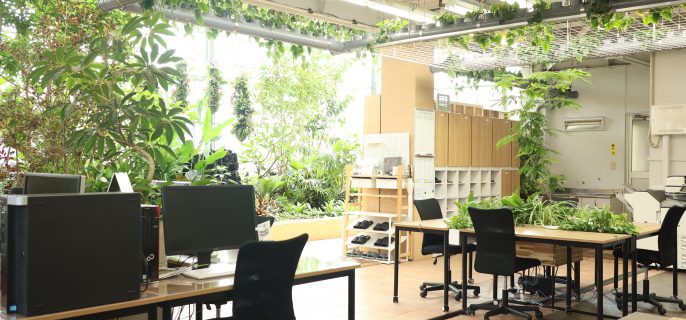 緑の持つ力を最大限に体感できる実験的オフィス。