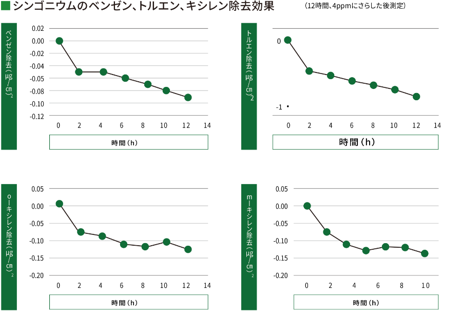 実験の結果では、時間の経過とともに除去率が高くなっていることから、植物がこれらの化学物質を単純に蓄積するのではなく、代謝的に分解して、植物内に必要な物質へ転換していることが分かります。
