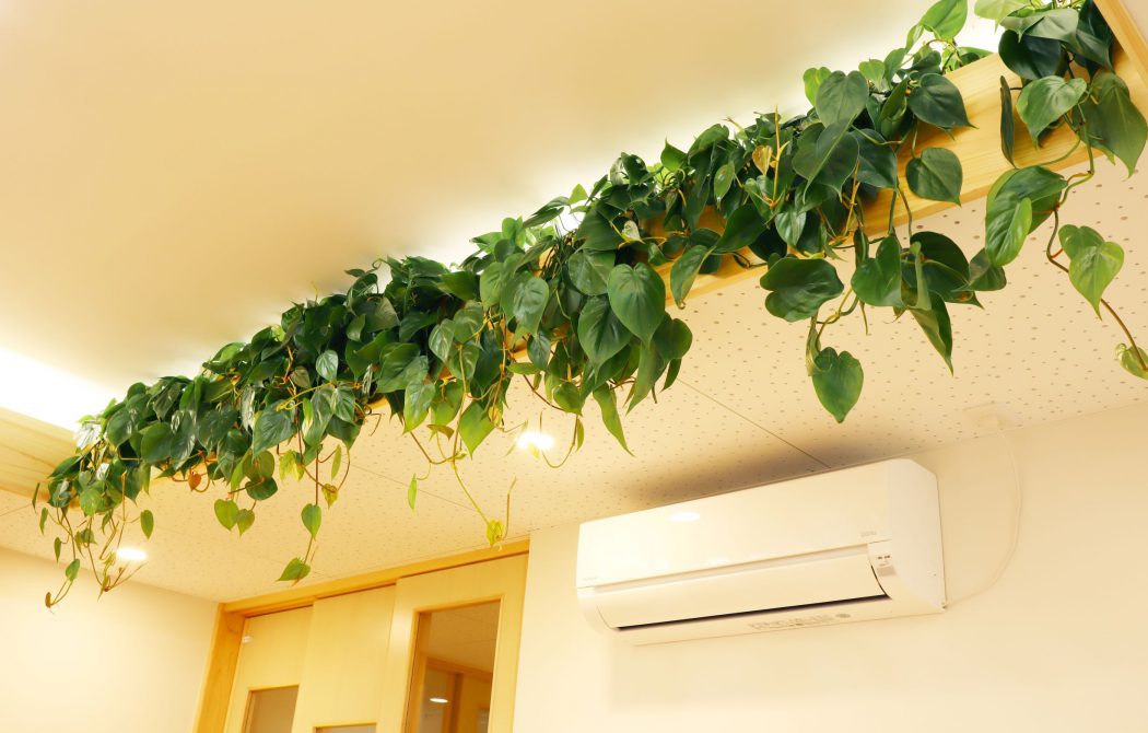 比較的丈夫で耐陰性もありますが、ずっと人工照明ですと生育が弱ってきます。直射日光は葉焼けの原因となるので避け、直接植物に日が当たらくても、やわらかい日差しの入るお部屋で育てるのがよいでしょう。成長が比較的早く、上に上に新芽を付けていきます。生育すると根元部分(鉢部分)は葉が落ちて寂しくなりがちです。そのまま長く伸びていくのを楽しんでもよいですし、時折、根元付近まで切り戻すなどすると、そこからまた芽が出て形がリフレッシュされます。