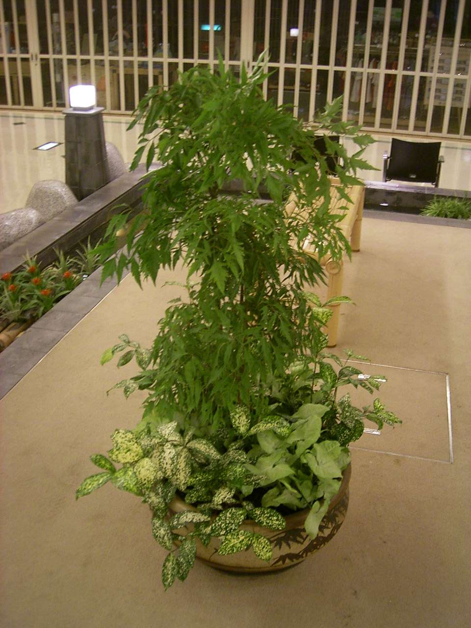 葉に白い部分が多い'ホワイト バタフライ’や、インドアグリーンとしては珍しい淡いピンク色の葉の'ピンク バタフライ’などの園芸品種が出回り、寄植えや下草のワンポイントとして活躍しています。